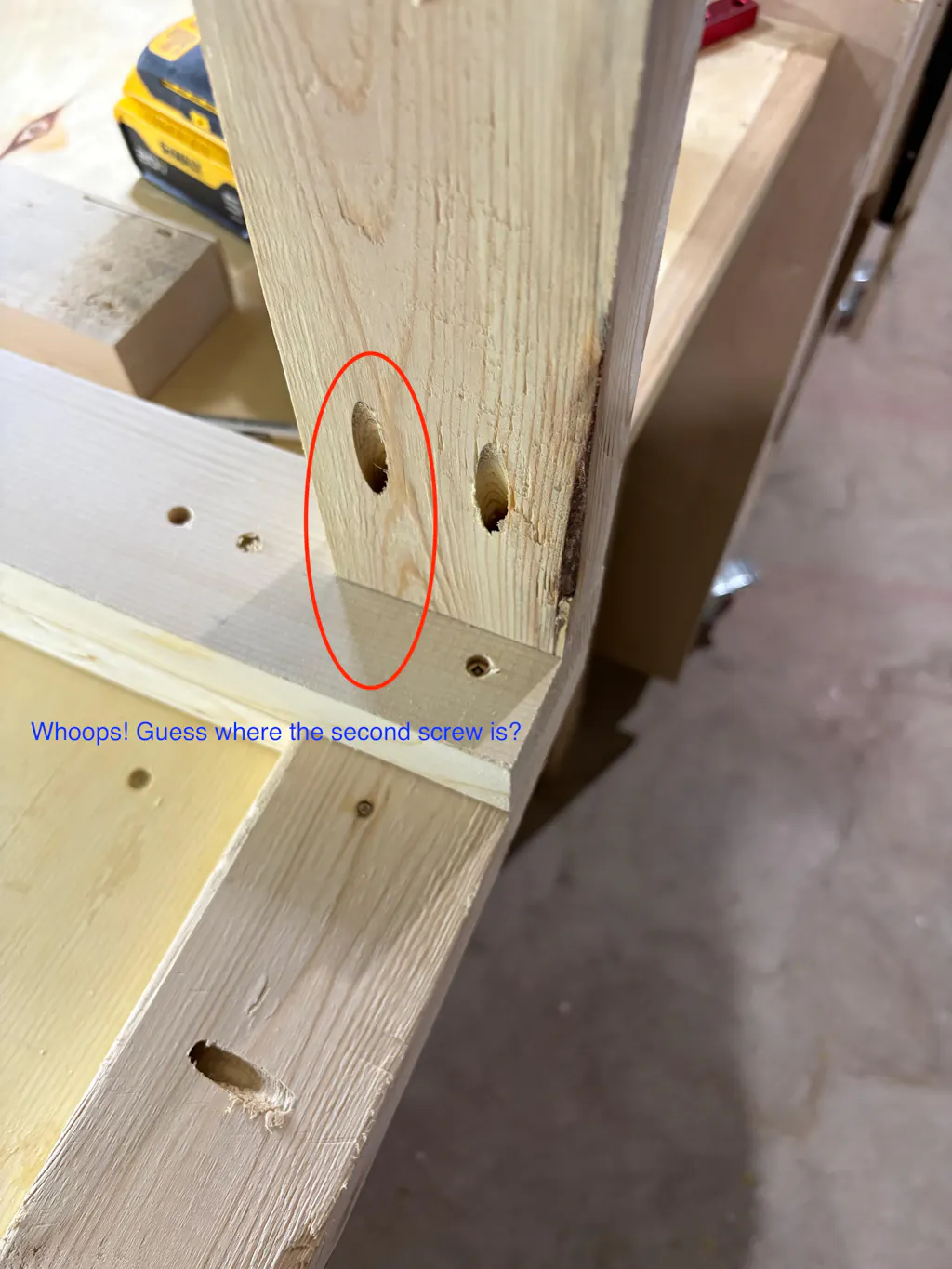 One thing to note on page 11: when attaching the stretchers with screws, make sure to place them outside of where the crosspieces will go. Otherwise, you may end up being unable to attach the crosspieces with pocket screws because those screws are in the way. I found that out the hard way.