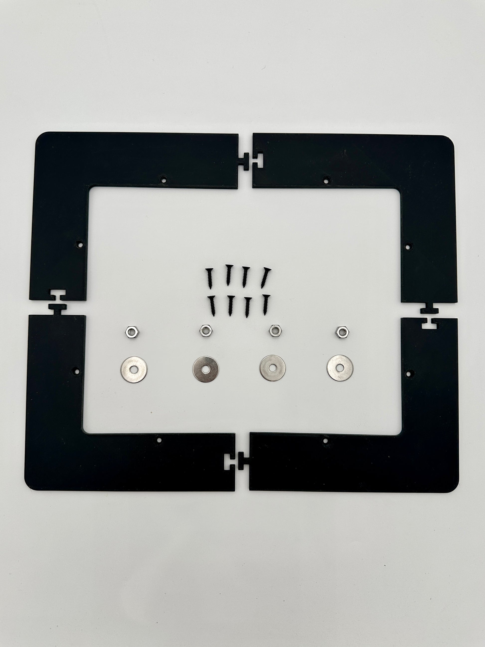 Routing out the opening for your router mounting plate is fast and easy using the four piece template and also includes all the required plate mounting hardware. This template is designed to be used with this Powertec mounting plate.